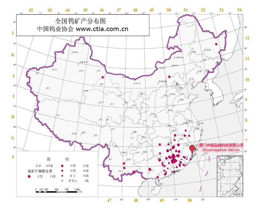 | 中國鎢礦分布 |